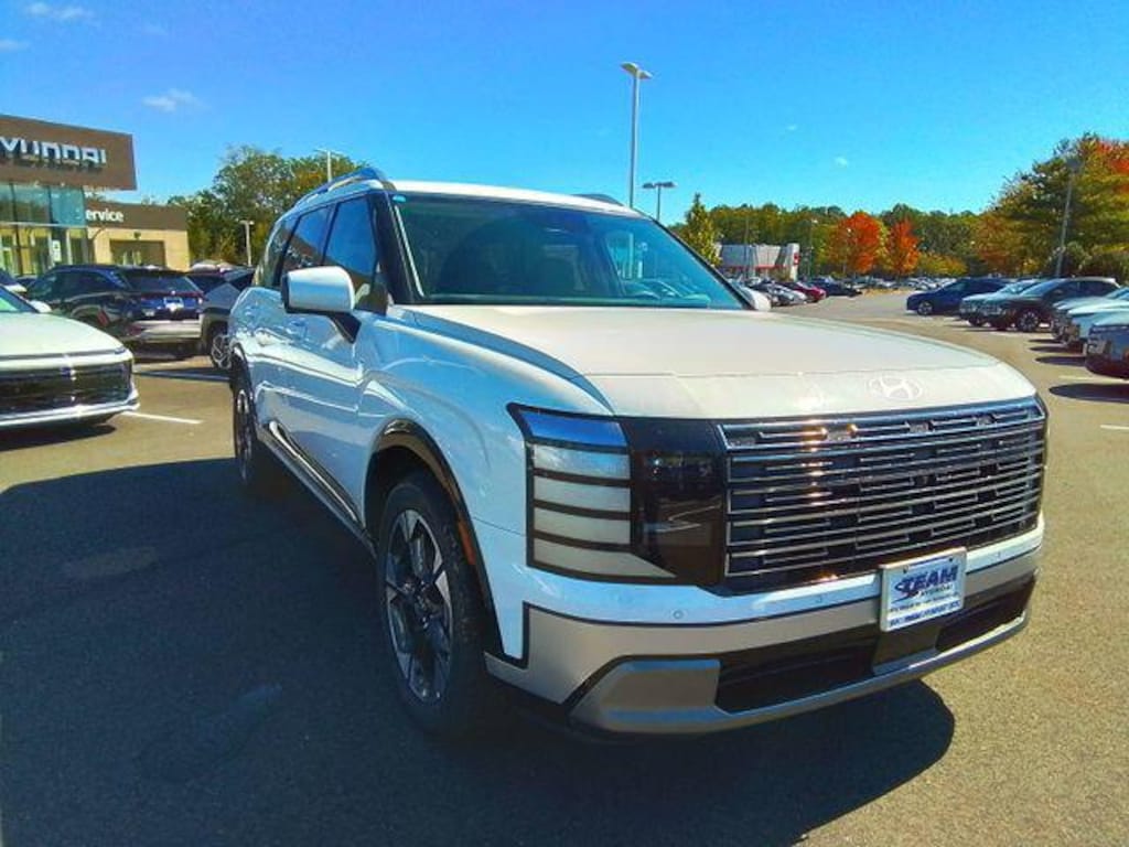 BLUETOOTH, BACKUP CAMERA, Option Group 01, 14 Speakers, 3rd row seats: split-bench, 4-Wheel Disc Brakes, ABS brakes, Air Conditioning, Alloy wheels, AM/FM radio: SiriusXM, Apple CarPlay & Android Auto, Audio memory, Auto High-beam Headlights, Auto-dimming door mirrors, Auto-dimming Rear-View mirror, Auto-leveling suspension, Automatic temperature control, Brake assist, Bumpers: body-color, Cargo Net, Cargo Organizer, Cargo Tray, Carpeted Floor Mats, Compass, Delay-off headlights, Driver door bin, Driver vanity mirror, Dual front impact airbags, Dual front side impact airbags, Electronic Stability Control, Emergency communication system: Bluelink+, Exterior Parking Camera Rear, First Aid Kit, Four wheel independent suspension, Front anti-roll bar, Front Bucket Seats, Front Center Armrest, Front dual zone A/C, Front reading lights, Fully automatic headlights, Garage door transmitter: HomeLink, Genuine wood console insert, Genuine wood dashboard insert, Heated & Ventilated Front Bucket Seats, Heated door mirrors, Heated front seats, Heated rear seats, Heated steering wheel, HVAC memory, Illuminated entry, Knee airbag, Leather Seat Trim, Leather steering wheel, Low tire pressure warning, Memory seat, Navigation System, Occupant sensing airbag, Outside temperature display, Overhead airbag, Overhead console, Panic alarm, Passenger door bin, Passenger vanity mirror, Power door mirrors, Power driver seat, Power Liftgate, Power moonroof, Power passenger seat, Power steering, Power windows, Radio data system, Radio: Infotainment Navigation System, Rear air conditioning, Rear anti-roll bar, Rear audio controls, Rear reading lights, Rear side impact airbag, Rear window defroster, Rear window wiper, Reclining 3rd row seat, Remote keyless entry, Security system, Speed control, Split folding rear seat, Spoiler, Steering wheel mounted audio controls, Tachometer, Telescoping steering wheel, Tilt steering wheel, Traction control, Trip computer, Turn signal indicator mirrors, Variably intermittent wipers, Ventilated front seats, Ventilated rear seats, and Wheels: 20" x 8.0J Alloy. 2026 Hyundai Palisade Limited