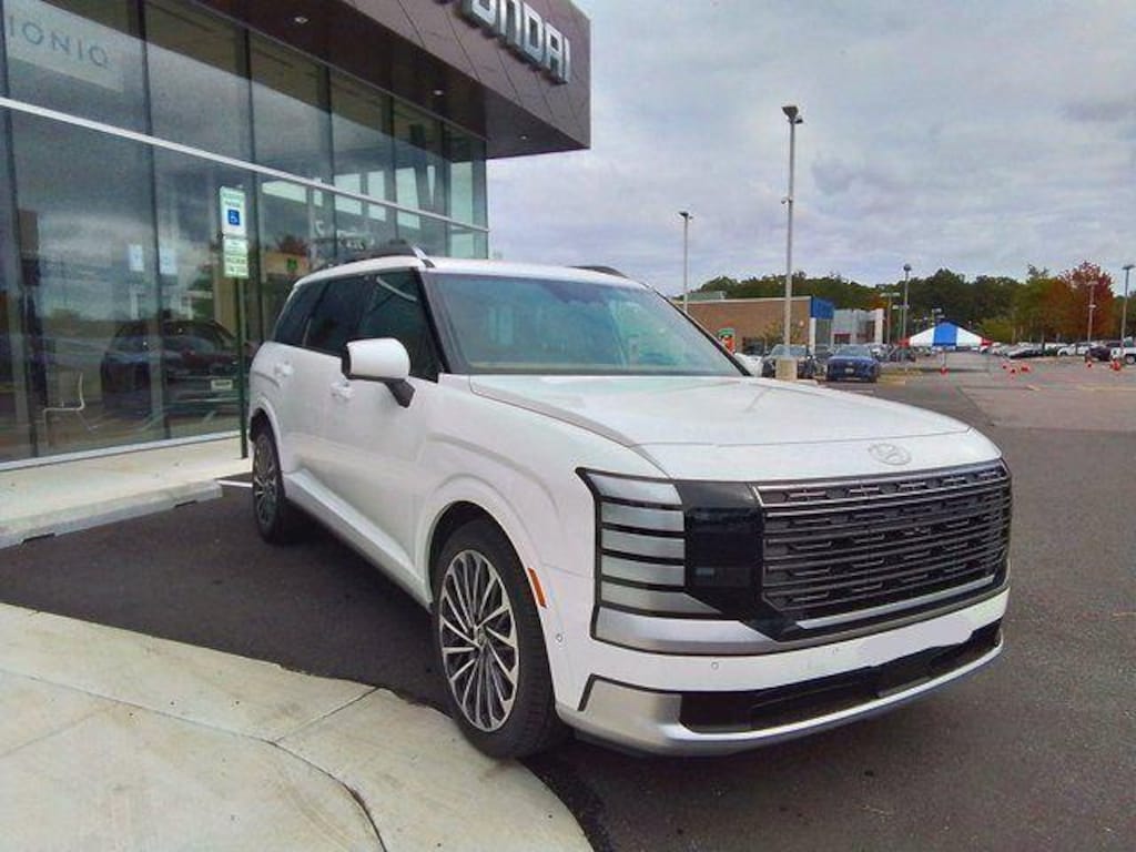 BLUETOOTH, BACKUP CAMERA, Option Group 01, 14 Speakers, 3rd row seats: split-bench, 4-Wheel Disc Brakes, ABS brakes, Air Conditioning, All-Season Fitted Liners, Alloy wheels, AM/FM radio: SiriusXM, Apple CarPlay & Android Auto, Audio memory, Auto High-beam Headlights, Auto-dimming door mirrors, Auto-dimming Rear-View mirror, Auto-leveling suspension, Automatic temperature control, Brake assist, Bumpers: body-color, Cargo Net, Cargo Tray, Carpeted Floor Mats, Compass, Delay-off headlights, Driver door bin, Driver vanity mirror, Dual front impact airbags, Dual front side impact airbags, Electronic Stability Control, Emergency communication system: Bluelink+, Exterior Parking Camera Rear, First Aid Kit, Four wheel independent suspension, Front anti-roll bar, Front Bucket Seats, Front Center Armrest, Front dual zone A/C, Front reading lights, Fully automatic headlights, Garage door transmitter: HomeLink, Genuine wood console insert, Genuine wood dashboard insert, Heads-Up Display, Heated & Ventilated Front Bucket Seats, Heated door mirrors, Heated front seats, Heated rear seats, Heated steering wheel, HVAC memory, Illuminated entry, Knee airbag, Leather steering wheel, Low tire pressure warning, Memory seat, Navigation System, Occupant sensing airbag, Outside temperature display, Overhead airbag, Overhead console, Panic alarm, Passenger door bin, Passenger vanity mirror, Power door mirrors, Power driver seat, Power Liftgate, Power moonroof, Power passenger seat, Power steering, Power windows, Premium Nappa Leather Seat Trim, Radio data system, Radio: Infotainment Navigation System, Rain sensing wipers, Rear air conditioning, Rear anti-roll bar, Rear audio controls, Rear reading lights, Rear side impact airbag, Rear window defroster, Rear window wiper, Reclining 3rd row seat, Remote keyless entry, Security system, Speed control, Split folding rear seat, Spoiler, Steering wheel mounted audio controls, Tachometer, Telescoping steering wheel, Tilt steering wheel, Traction control, Trip computer, Turn signal indicator mirrors, Variably intermittent wipers, Ventilated front seats, Ventilated rear seats, and Wheels: 21" x 8.5J Alloy. 2026 Hyundai Palisade Calligraphy